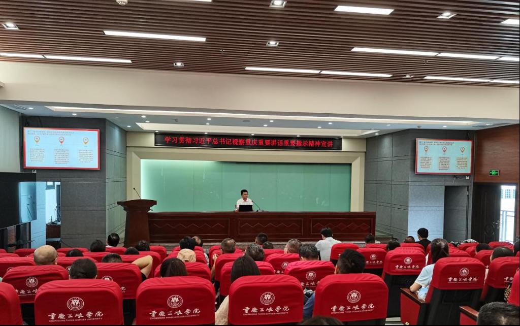 会上,刘嘉首先从时间维度、空间维度和发展维度,阐述了党的十八大以来,习近平总书记三次赴重庆考察所作出的战略擘画,寄予的殷切期望。随后,从习近平总书记重庆行概况及重要指示精神、习近平总书记听取重庆市委和市政府工作汇报发表重要讲话主要精神、习近平总书记在重庆主持召开新时代推动西部大开发座谈会发表重要讲话精神、深入学习贯彻习近平总书记视察重庆重要讲话重要指示精神的工作要求四个方面进行了宣讲。