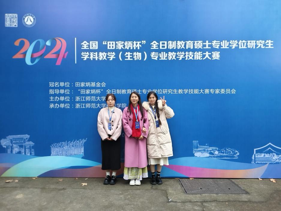 12月11日—13日,2024年全国“田家炳杯”全日制教育硕士学科教学(生物)专业教学技能大赛于浙江师范大学圆满落幕。我院甘丽萍老师带领学科教学(生物)的2名研究生参赛。经过激烈角逐,王凤同学荣获三等奖(指导老师:沙爱龙、甘丽萍),唐冬屹(指导老师:甘丽萍)同学荣获优秀教学设计奖。