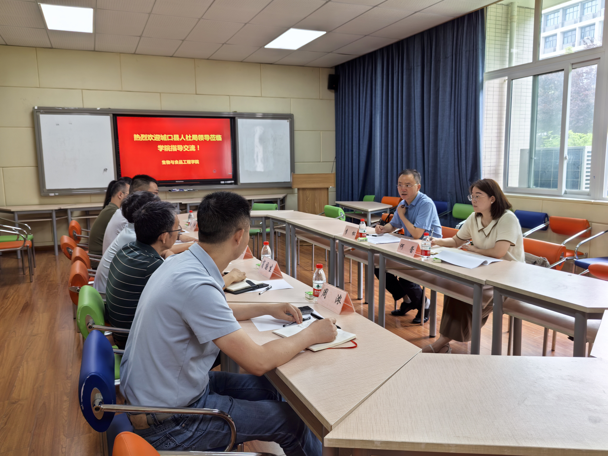6月9日,城口县人社局局长李松和副局长何蕾来我院交流座谈,学校对外合作与交流处处长骆孟鑫,人事处副处长赵滟、科研处副处长周浓,学院党总支书记肖国生及三峡库区道地药材绿色种植与深加工重庆市工程研究中心主任祁俊生参与座谈。