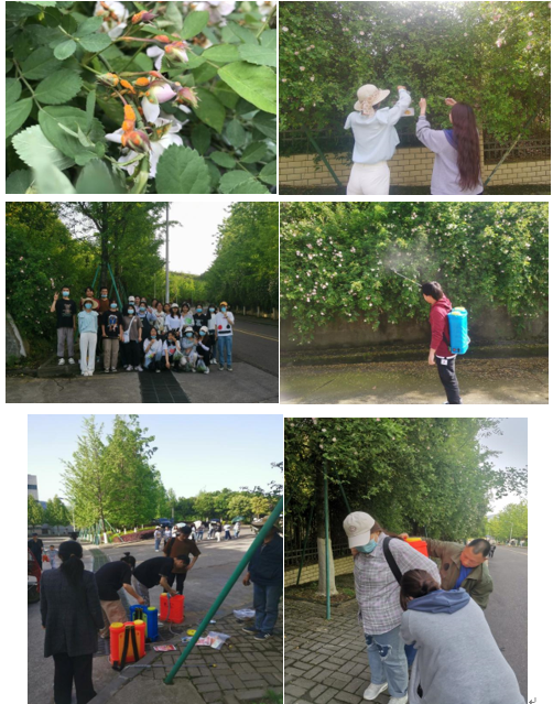 本次蔷薇花病虫害防治是太阳成集团tyc122ccvip党总支发挥专业优势,巩固拓展党史学习教育成果,持续深化“我为群众办实事”实践活动的一个缩影。也是重庆市一流课程《园艺植物病虫害防治》立足校园环境,实践育人的一次有益探索。今后,学院将积极树立“党建+”理念,发挥专业特色,结合已开发微信小程序,让学院学生积极参与到校园常见植物名片制作,大树修剪、冬季涂白等校园绿化植物日常养护管理,以及为办公区域室内绿植养护进行不定期指导等工作之中。让理论与实践相融合,让教师的教学引导能力和学生的专业实践能力共同提高,让师生校园主人翁意识深入人心,共同为我校植物正常生长、繁花似锦保驾护航。