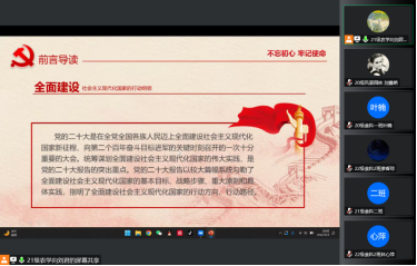 会上,主讲人向刘君领学全面建设社会主义现代化国家的行动纲领,从全面建设社会主义现代化国家的基本目标、战略步骤、重大原则和具体实践四个方面深入学习,着重讲解了中国式现代化与实现中华民族伟大复兴的关系。会后,同学们感慨时代号角催人奋进、激励人心,纷纷表示要满怀奋斗的昂扬激情,不懈求索、脚踏实地,充分发挥所学专业知识,在时代的舞台上发光发热,增光添彩。