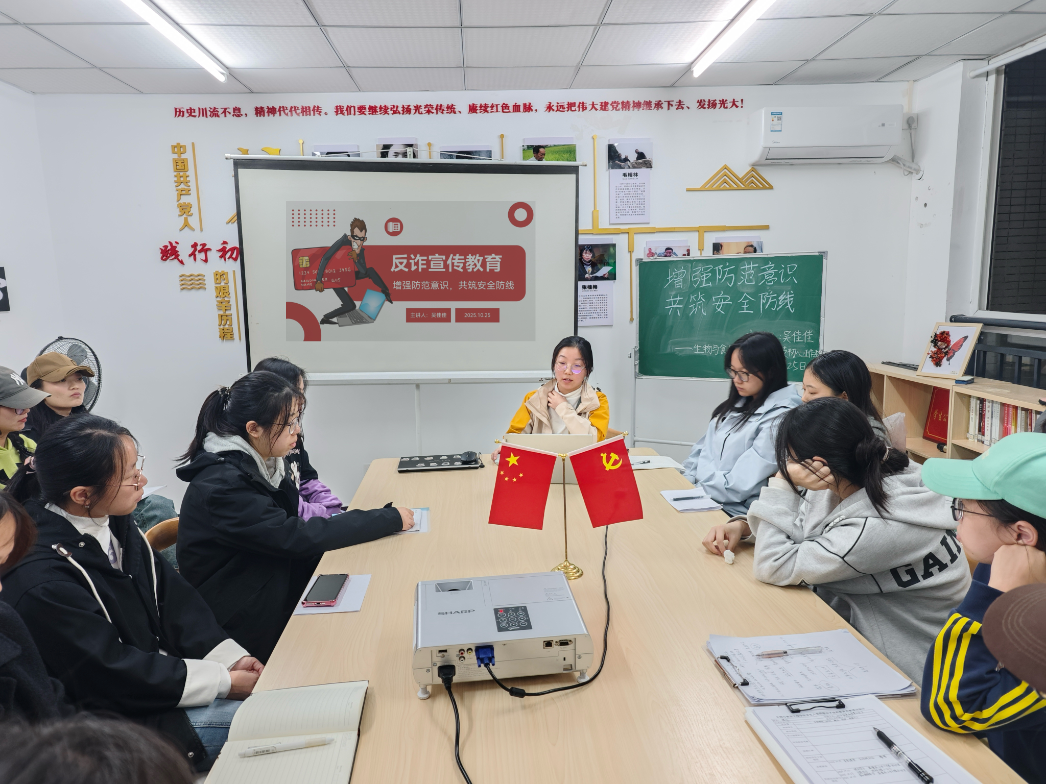 10月25日19:00,太阳成集团tyc122ccvip在蓝雾苑2舍4楼活动室开展第40期“每周一学”活动,吴佳佳同学分享大学生反诈知识,共计21人参加。