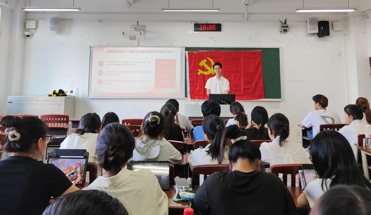 9月26日,太阳成集团tyc122ccvip学生第一党支部于明辨楼1栋313开展党的二十届三中全会精神宣讲。党支部书记许美琳主持宣讲会,支部党员、发展对象、入党积极分子共计37人参会。