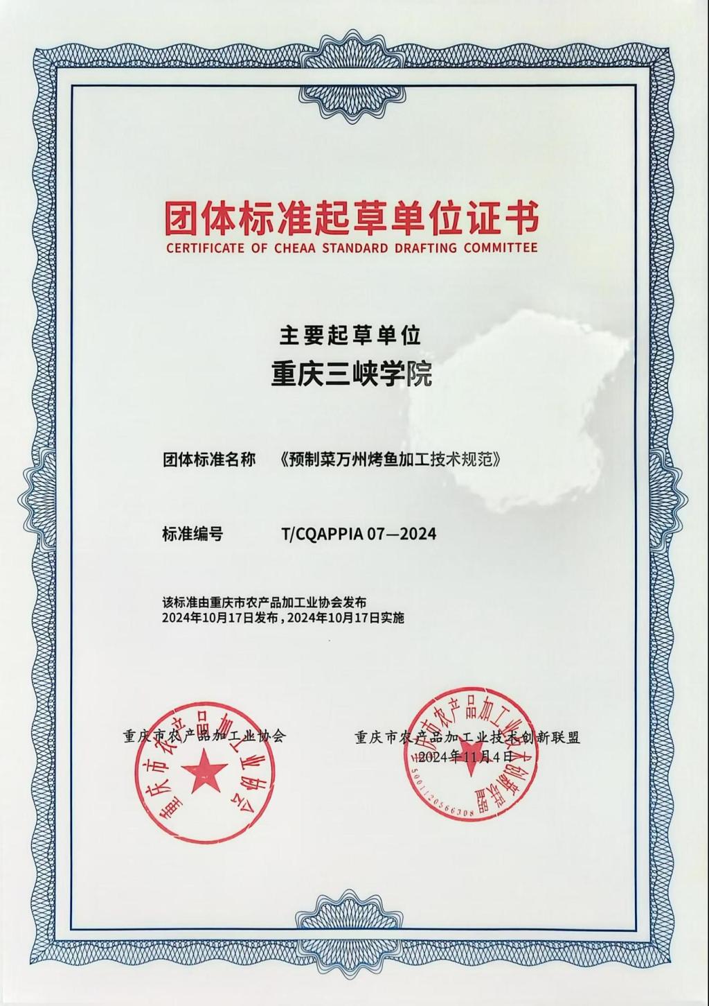 我院牵头制定的《预制菜万州烤鱼加工技术规范》团体标准发布