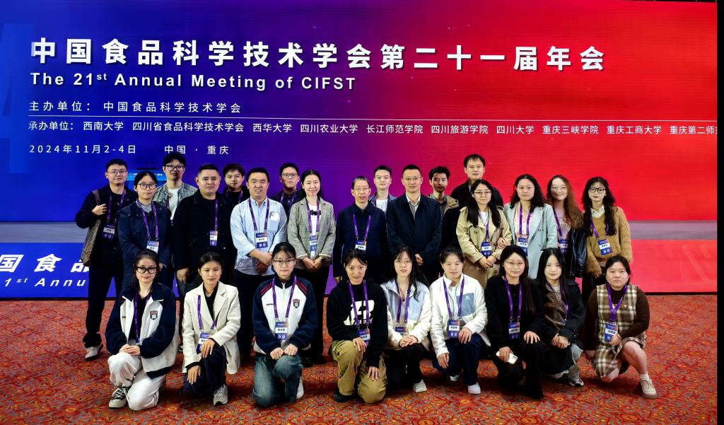 本届年会以“使命驱动下的食品科技与发展”为主题,围绕我国食品科技与产业发展的新变化、新需求、新任务,集结食品科技力量,凝聚行业新质之光,为川渝地区特色食品产业乃至我国食品产业高质量发展注入创新活力、贡献科技智慧。会议上,我院教师赵峰研究员和研究生刘举针对重庆本地特色食品分别做了题为《预包装万州烤鱼贮藏过程中品质变化与复合保鲜剂研发》、《基于宏基因组学的渝东北地区腊肉微生物多样性与风味形成相关基因分析》的报告。我院师生30余人参与了会议。