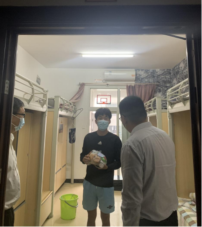 自学生入住健康观察室以来,学院密切关注健康观察学生的学习、生活以及身心健康情况。走访过程中,学院领导与同学们亲切交流,详细询问同学们的生活和学习安排,鼓励同学们克服困难、上好网课,对同学们理解和支持学校疫情防控工作表示肯定与感谢。对于刚报到的15名2022级新生,骆孟鑫亲切关怀他们的生活情况,询问新环境适应情况,同学们纷纷表示能够适应新环境,真切感谢学院的亲情与温暖,定会积极服从健康观察要求和统一安排。