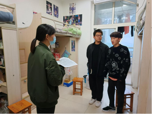 我院辅导员在走访过程中询问了同学们近期学习和生活状况,交流中了解同学们的新学期学习计划、生活中遇到的困难、周末安排等情况并给予建议,希望同学们保持积极向上的态度,合理安排时间,劳逸结合。同时,提醒同学们严格遵守疫情防控政策,提高个人防护意识,不聚集,戴口罩,坚持自我健康监测和每日健康打卡;叮嘱同学们严格遵守宿舍管理规定,保持寝室卫生,创造健康、卫生的寝室环境。