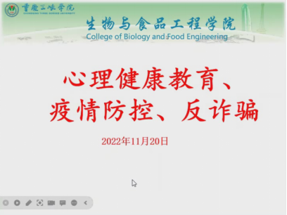 11月20日下午,我院辅导员分年级线上开展心理健康教育、疫情防控、反诈骗专题周末教育,我院全体学生参加。
