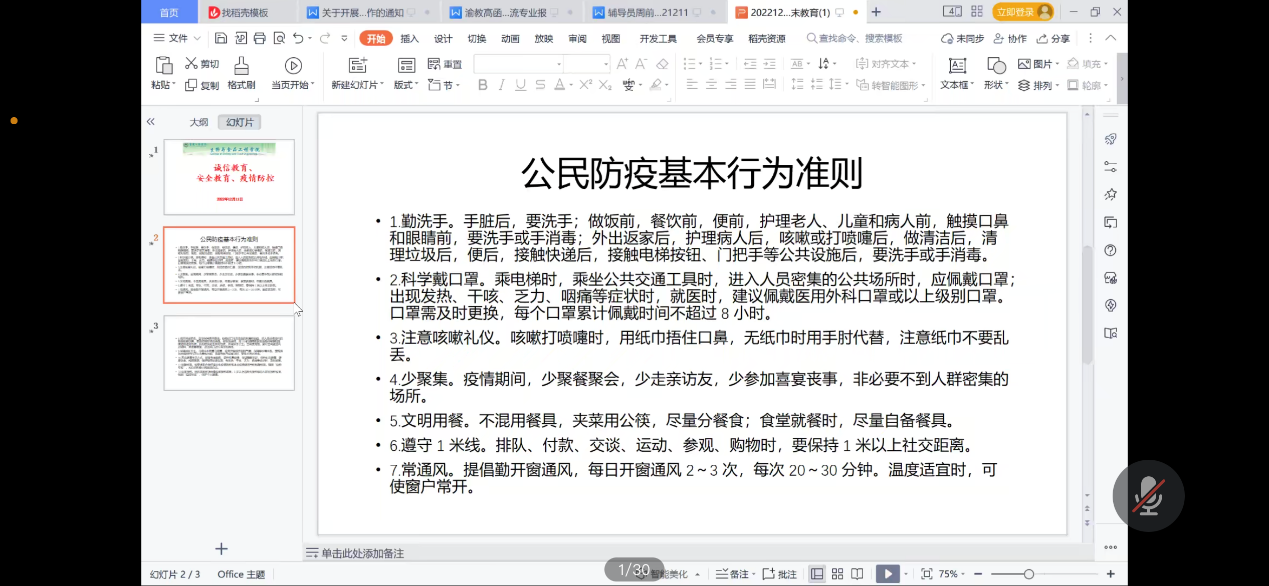 12月11日下午,我院辅导员熊小飞、许美琳、龙颖、龚莉分年级开展线上诚信教育、安全教育、疫情防控专题周末教育,我院全体学生参加。