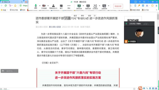 6月15日-20日,我院团支部采用线上线下相结合的方式组织召开“六查六问”专项行动专题集中学习会。