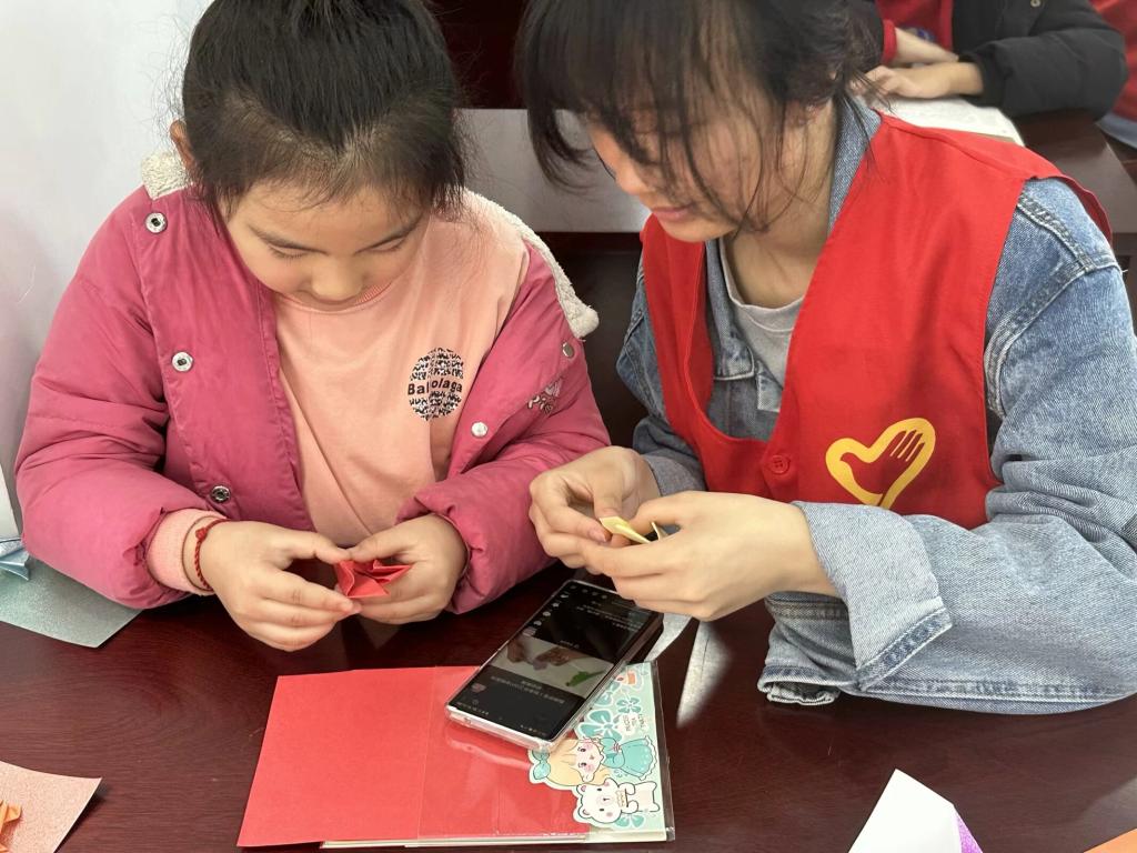 为了增加小朋友们对生活常识的认识,丰富小朋友们的空闲时间,帮助小朋友们加强对知识的理解,增强与社区之间的互动交流, 3月期间,我院青年志愿者协会在五间桥社区开展了四次青鸢课堂活动,主题分别是“最温暖的初春说爱你——三八妇女节”“课堂小游戏——极速问答”“课堂小游戏——折纸”“科学小实验——魔法小纸条”。