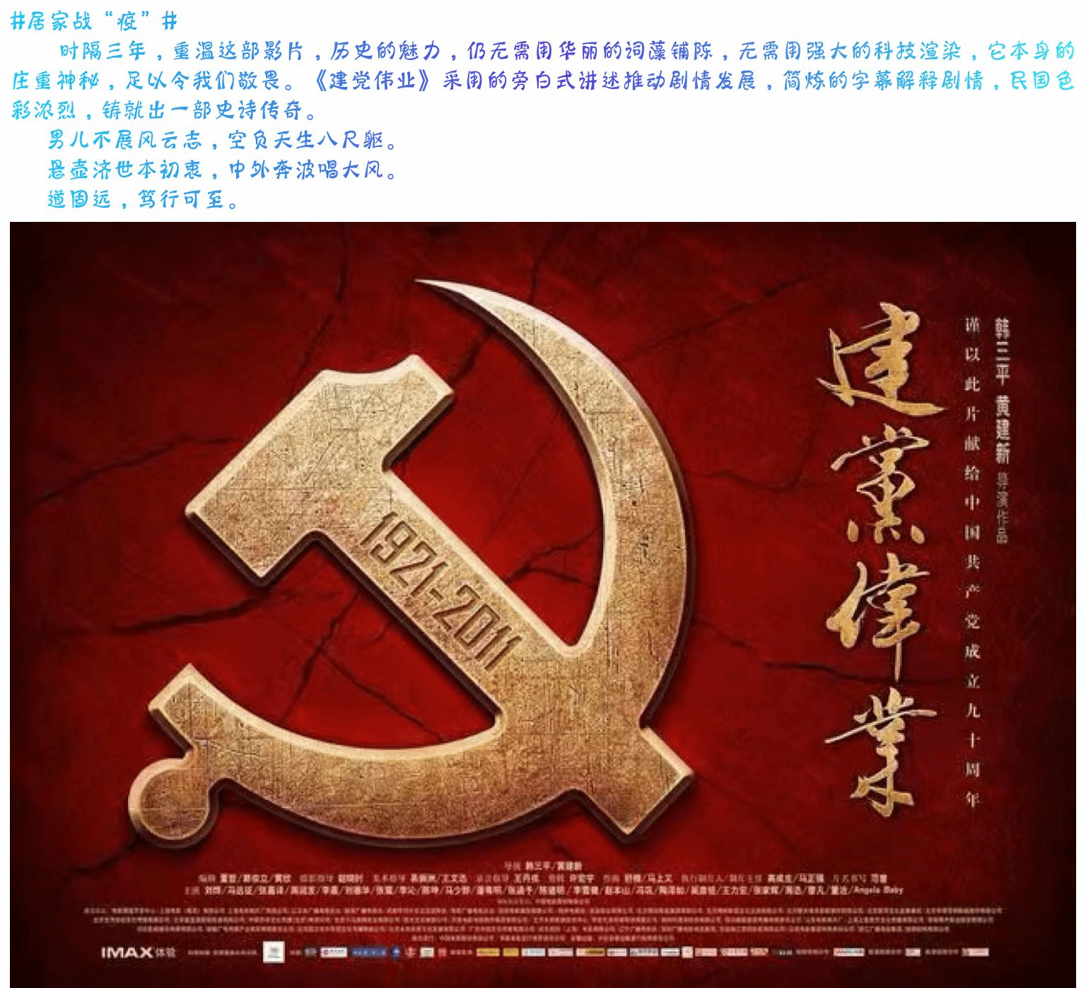 此次电影赏析打卡活动增强了同学们的民族自信心,排遣了同学们的学习压力。同时,同学们通过电影赏析有了新的感悟,提升了同学们的思想意识。希望同学们在今后的学习生活中继续保持积极乐观的心态,努力学习,不断前进。(生工学院 潘传青 李华林)