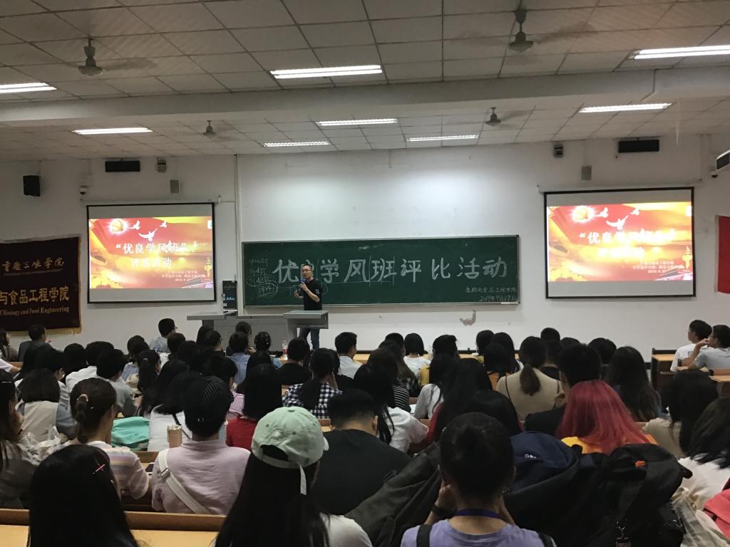 9月27日19:00,我院于明辨楼二栋102开展“优良学风班”评比展示。出席本次活动的有学工办主任李华林,辅导员蒋园园、陈华华,2017、2018、2019级学生参与其中。本次活动旨在进一步加强我院班级优良学风建设,充分发挥优秀班级的带头表率作用,带动各班级共同进步。
