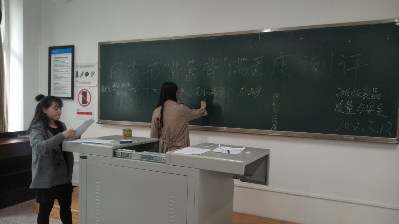 测评开始后团委学生会组织部干事给大家讲解测评流程,并分发试卷。每个团支部青年团员自行填写测评表。待团员填表结束后,干事们将表收齐,并由本团支部的团员们选择一名在团内没有担任任何职务的普通共青团员进行唱票,以确保公正性。唱票情况公示在黑板上,最后计算出每个团支部书记的满意度。