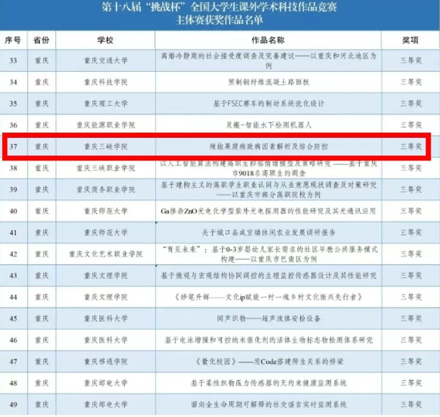 近日,第十八届“挑战杯”全国大学生课外学术科技作品竞赛决赛结果揭晓。我院2020级本科生徐嘉茂团队项目《辣椒果腐病致病因素解析及综合防控》最终获得主体赛全国三等奖的好成绩。