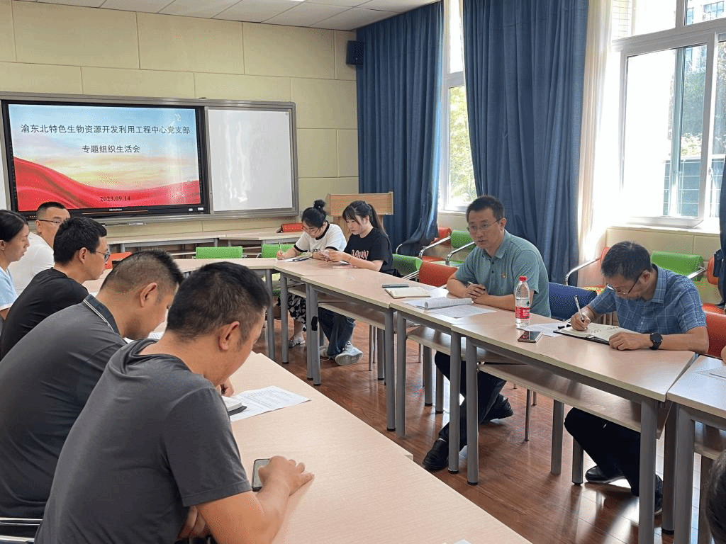 2023年9月14日下午,渝东北特色生物资源开发利用工程中心党支部在慎思楼2栋216室召开专题组织生活会,会议由党支部书记赵峰主持,支部全体在校党员参加。